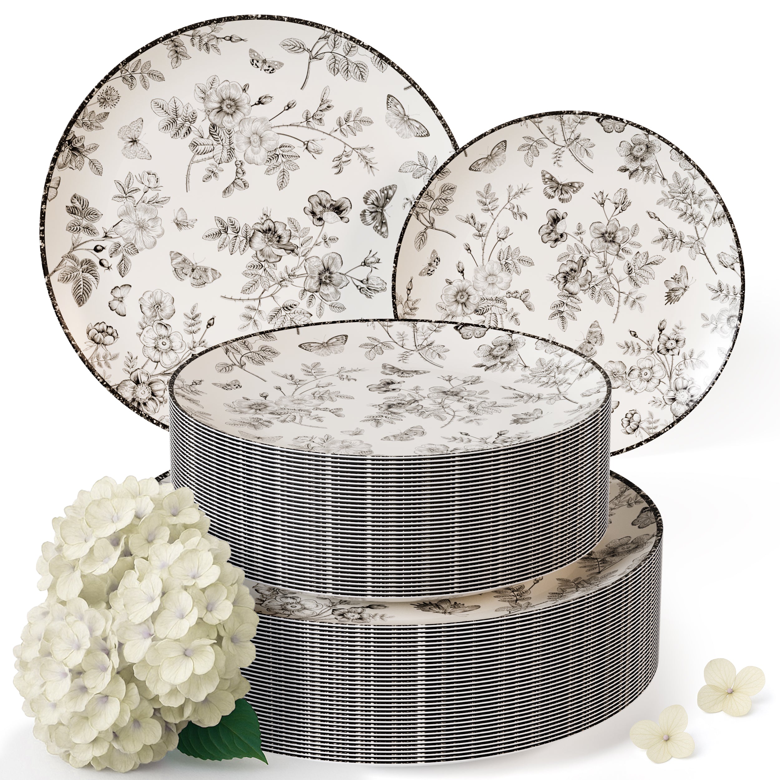 Elevate your event décor with this versatile Classic Botanical Combo Set, featuring 200 premium plates in two essential sizes. Get 100 elegant 10-inch dinner plates paired with 100 convenient 8-inch salad plates—the perfect pairing for any gathering. These beautifully designed botanical-themed plates add sophistication to weddings, corporate events, garden parties, and celebrations. Durable and practical, they're ideal for caterers, event planners, and hosts who demand quality without compromise. Stock up and save with this complete tableware solution that transforms any table into a stunning focal point.
