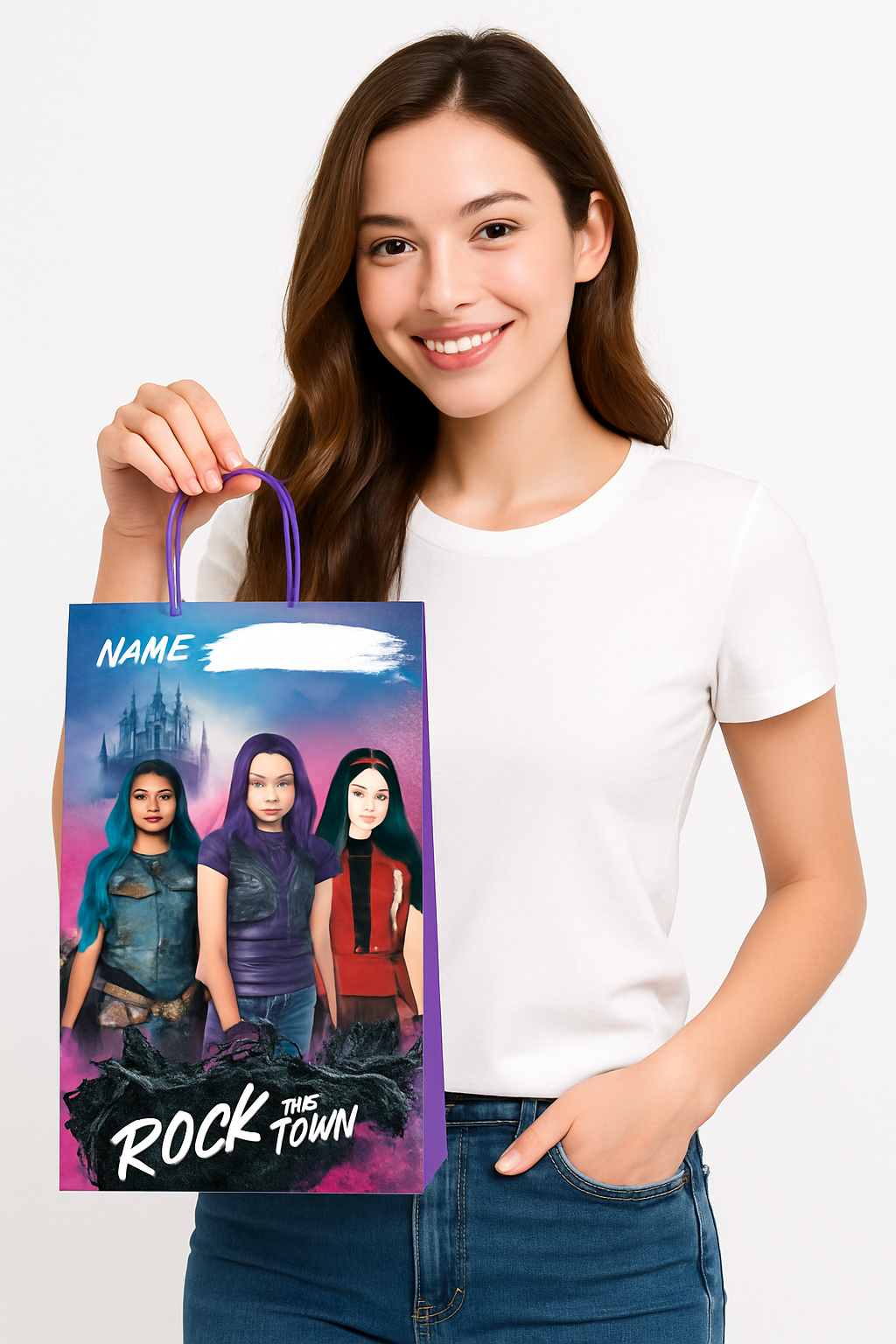 Celebrate your child’s party in style with these Disney Descendants 3 Loot Bags. Featuring bold images of Evie, Mal, and Uma against a vibrant backdrop, these plastic favor bags will delight young fans. Each bag includes a spot to write guests' names, ensuring their personalized bag of goodies stands out. Perfect for adding a magical touch to any birthday celebration, these loot bags measure 6.5" x 9.5" and come in a convenient pack of 8. Treat your little ones like royalty with these standout party favor containers!