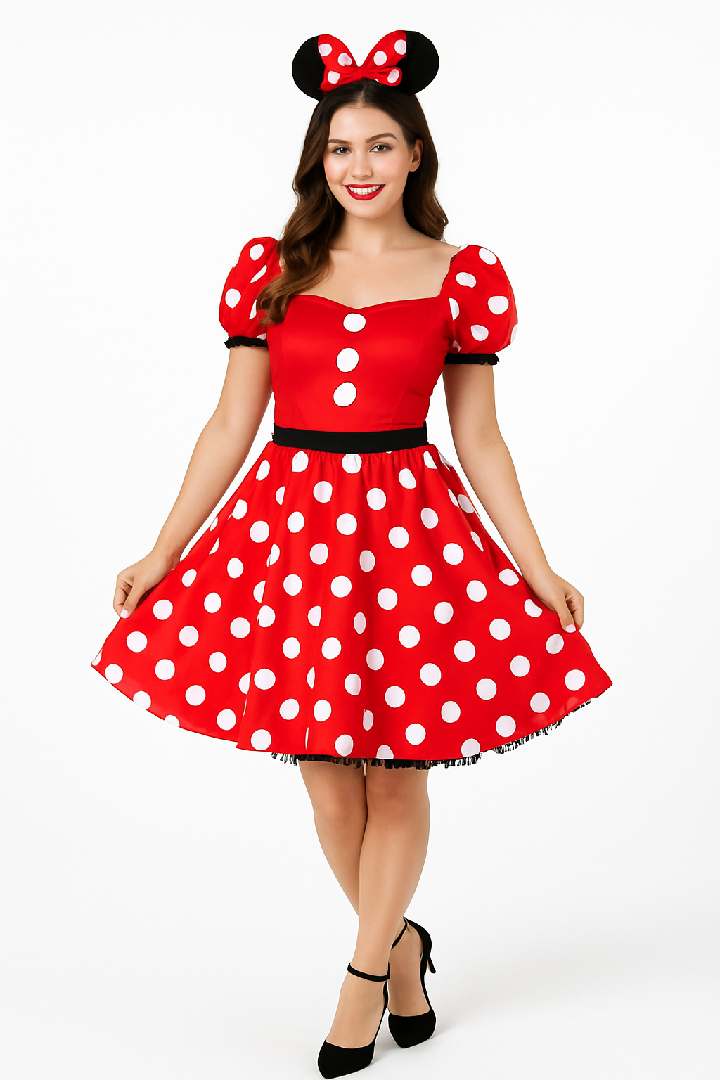 Step into the magical world of Disney this Halloween with the Minnie Mouse Classic Women's Costume. Featuring the iconic red and white polka dot dress, along with a matching headband with ears and bow, this enchanting ensemble captures the timeless charm of Minnie herself. Perfect for festive parties and events, this costume brings Disney's beloved character to life with style and flair.