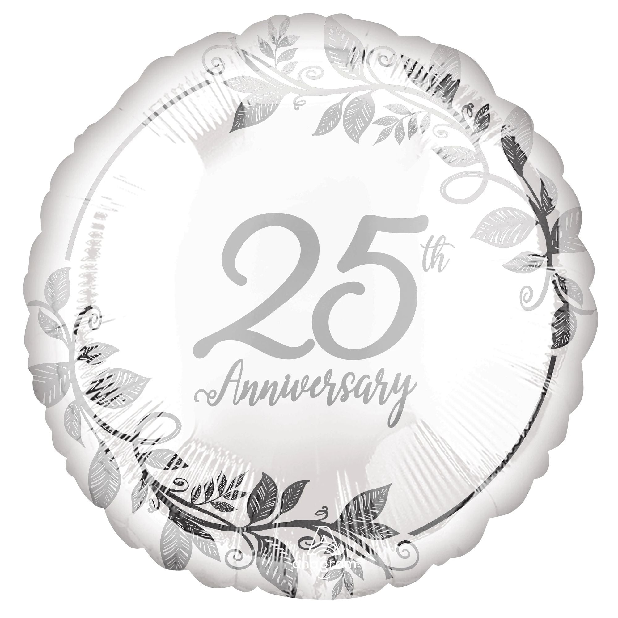 Celebrate a quarter-century of love with our stunning 18-inch Mylar Balloon, perfect for any 25th anniversary celebration. Featuring a sophisticated metallic design with elegant leaf accents, this foil standard balloon adds a touch of class to your festivities. Ideal for everyday celebrations, it makes a memorable statement. Fill your party space with joy and elegance!