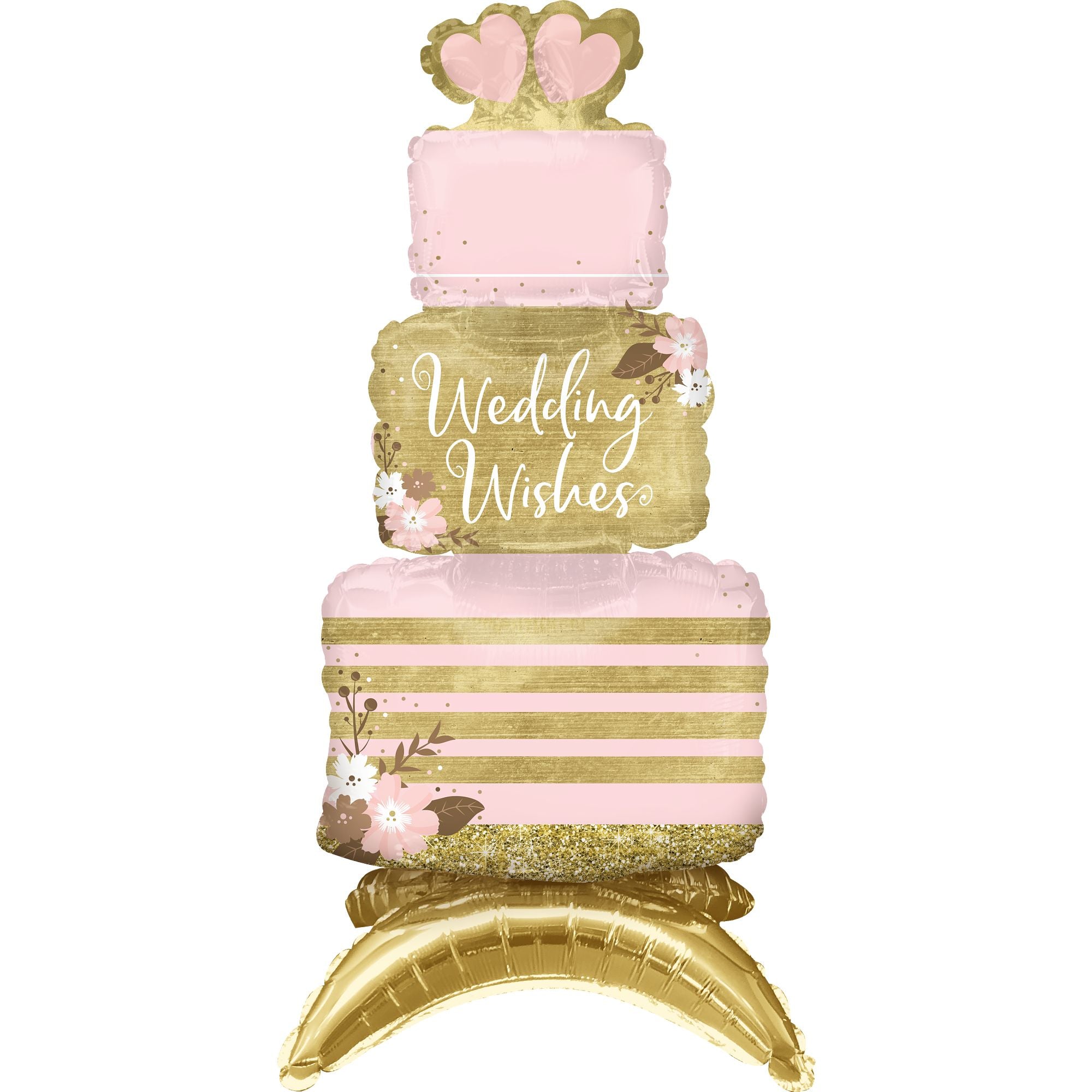 Elevate your special day with this stunning Wedding Wishes Balloon Cake. Designed in a luxurious foil finish, it combines elegance with a touch of whimsy. Perfect for everyday celebrations, this air-filled sitter features beautiful floral accents and a gold and pink color palette, making it an exquisite centerpiece for weddings and bridal showers. Make your event memorable with this charming, high-quality decoration.