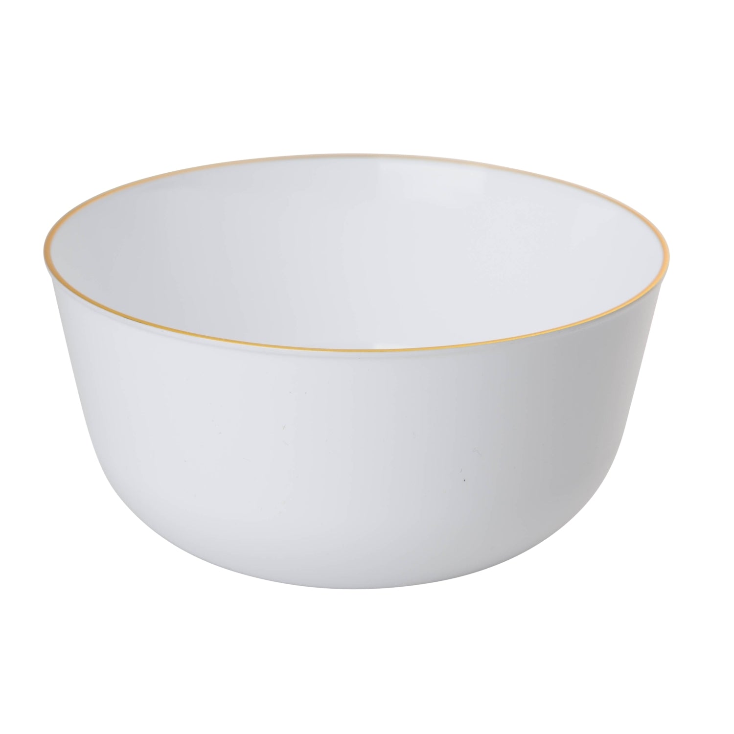 These Stunning Disposables Are Part Of The Trendablesâ„¢ Collection Of Fine Dinnerware. Each Plastic Bowl Measures 24 Oz. This Bowl Is Part Of The Flora Series And Features A Solid White Base With A Gold Hot Stamped Rim. Coordinates With Additional Flora Series Disposables. Each Package Contains 40 Exquisite Bowls.