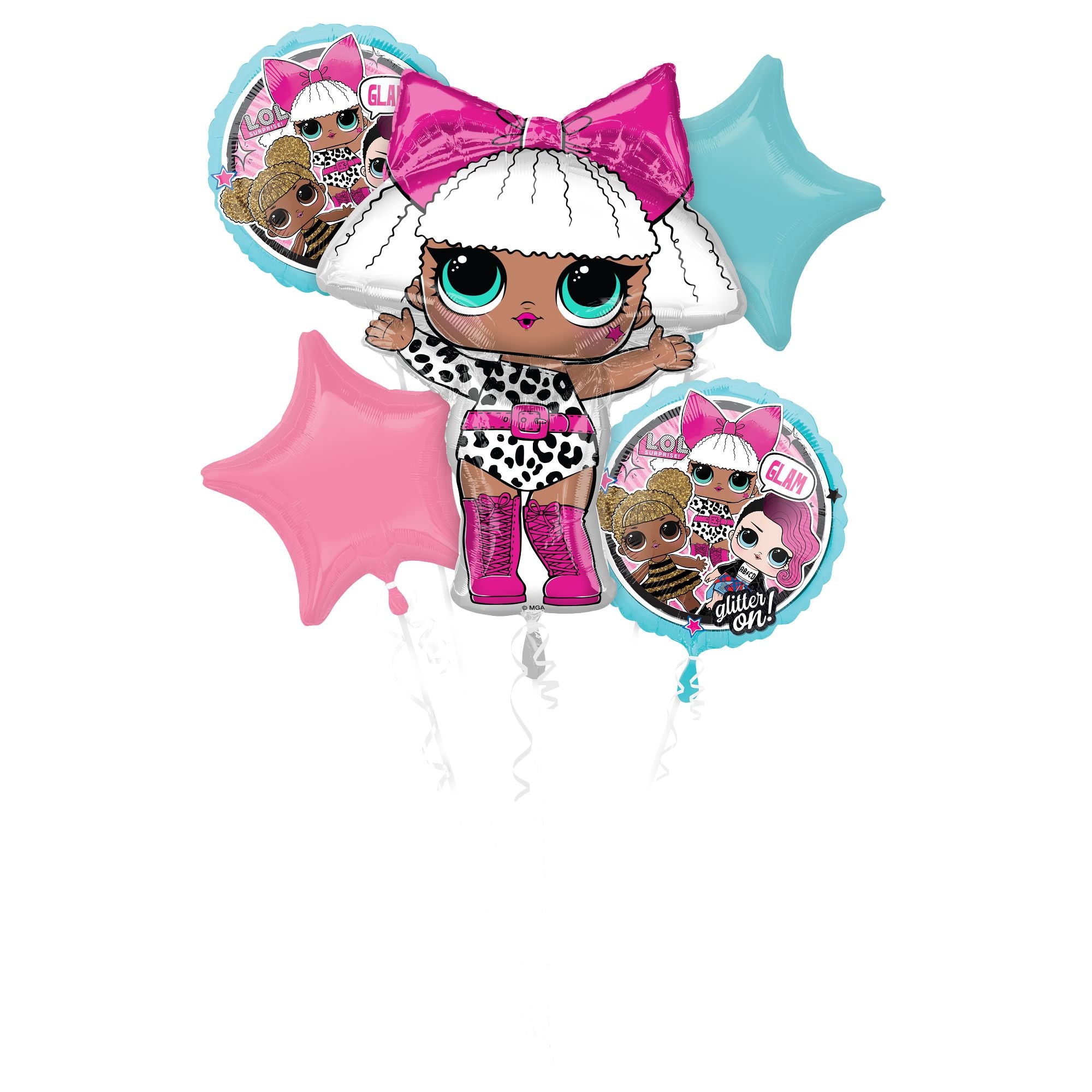 Make your child's birthday party unforgettable with the LOL Surprise Foil Balloon Bouquet. This vibrant 5-piece set features delightful balloons with popular LOL characters, perfect for adding a playful touch to any celebration. Ideal for juvenile birthdays, these metallic balloons bring a burst of fun and excitement to every gathering. Let the party shine with LOL glam!
