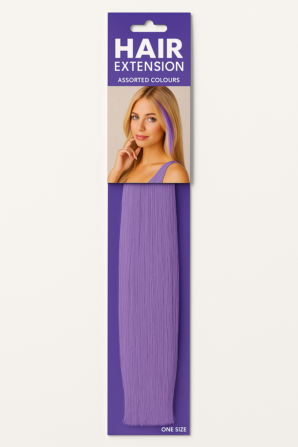Add a pop of color with this vibrant purple hair extension, perfect for showcasing your team spirit or adding flair to any look. Made of high-quality synthetic fiber, this extension effortlessly enhances any hairstyle with additional length. Attached to a convenient comb, it's easy to clip in and remove, allowing versatility for any occasion. Mix with other colors for a daring style or let it make a statement on its own. Ideal for everyday wear or costume events. Available in a variety of colors to suit your style.