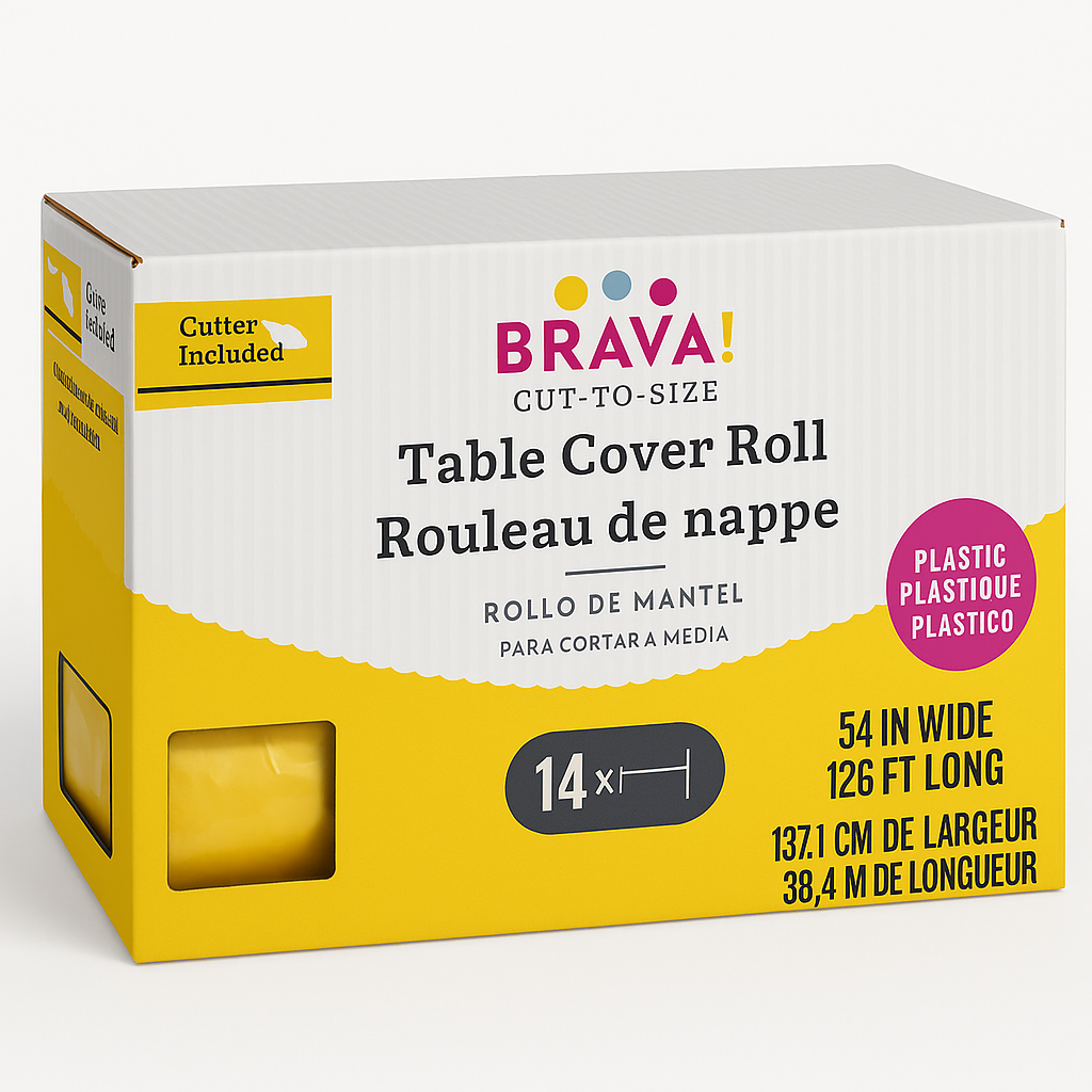 Brighten up your event with this Yellow Plastic Table Cover Roll, perfect for any occasion. Measuring 54 inches wide and 126 feet long, it provides ample coverage for tables of any shape. The convenient built-in slide cutter ensures you get the exact length you need with ease. Suitable for both indoor and outdoor use, this table cover is a versatile choice for picnics, parties, and everyday dining. Durable and easy to store, it's a must-have for effortless table setup.