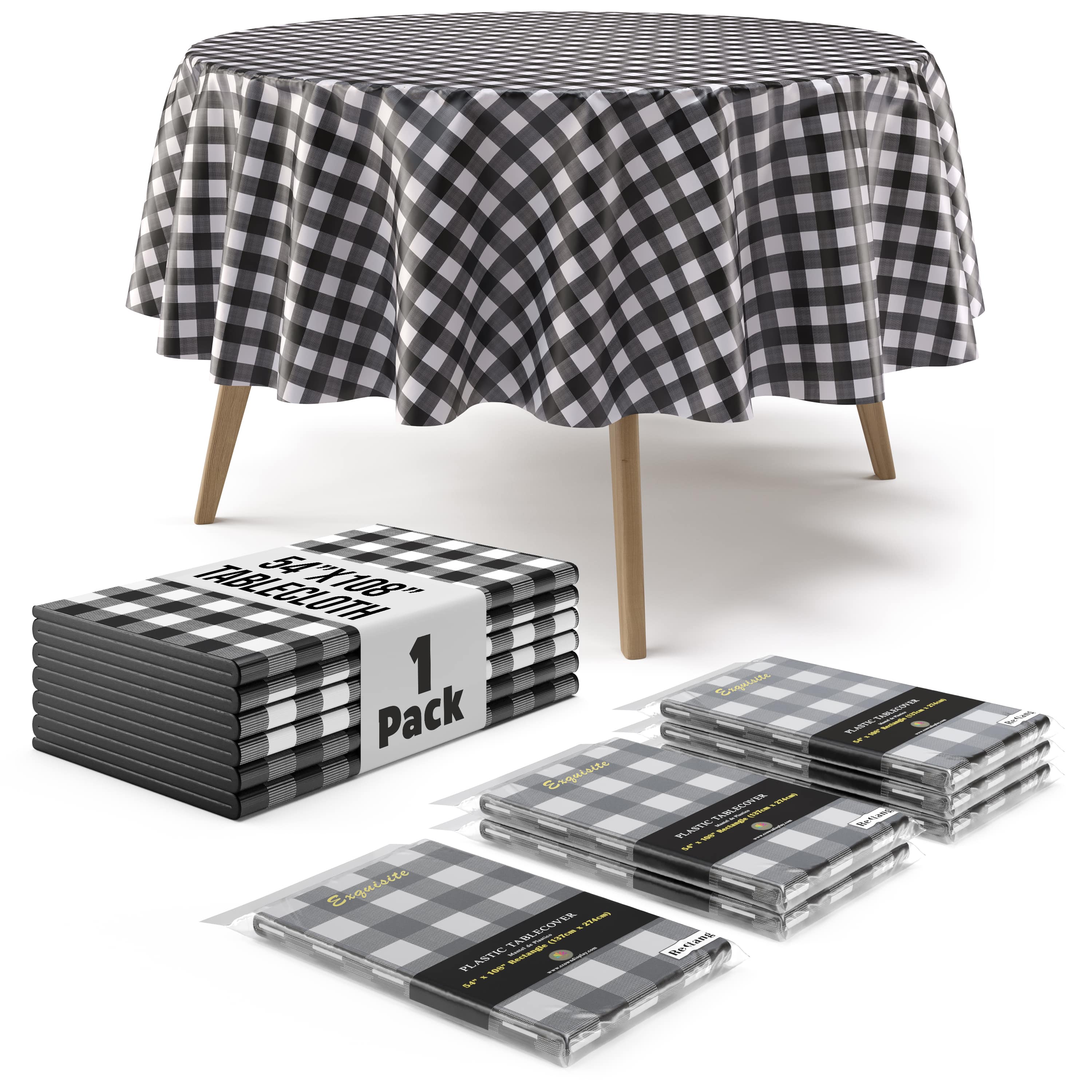 • Each package includes 1 standard black gingham round table cover