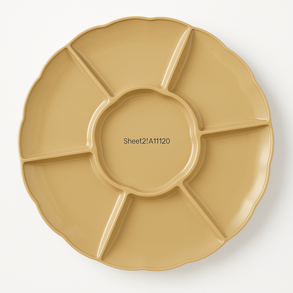 Elevate your entertaining with this stunning 16-inch Scalloped Gold Plastic Chip and Dip Tray. Perfect for both everyday use and special events, this elegant serving platter features six compartments ideal for holding chips, dips, cheese, fruit, and more. Its luxurious gold hue adds a sophisticated touch to any occasion, from casual gatherings to festive celebrations. Crafted from high-quality plastic, this tray is both lightweight and durable. Hand wash only. Note: Not suitable for microwave use.