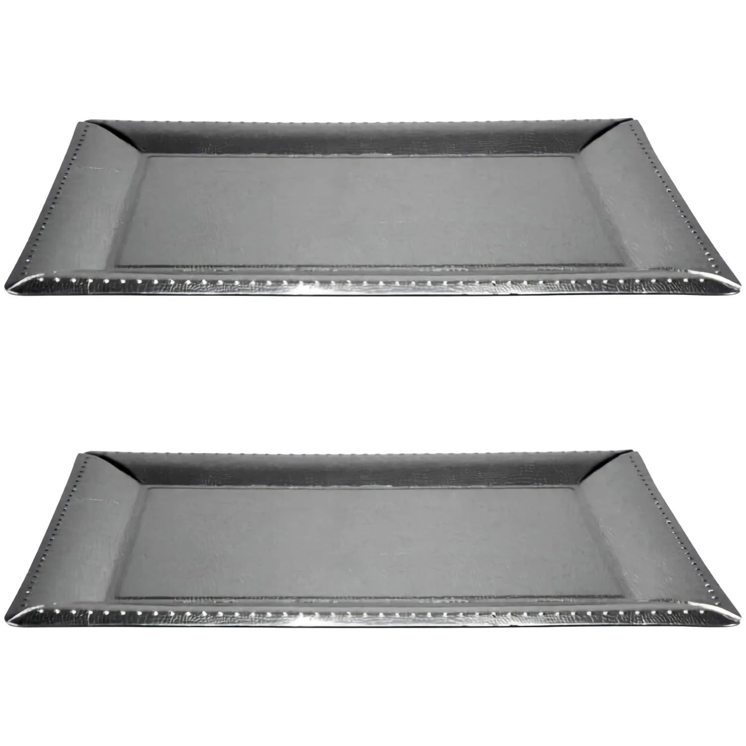 Elevate your catering experience with our Silver Serving Trays, perfect for everyday events and special gatherings. This set includes two elegant, 16-inch trays, designed to enhance the presentation of your culinary creations. Suitable for both retail and personal use, these trays offer versatility and style, making them an essential addition to any serveware collection. Whether for an intimate gathering or a grand celebration, trust these trays to deliver both functionality and a touch of sophistication to your table setting.