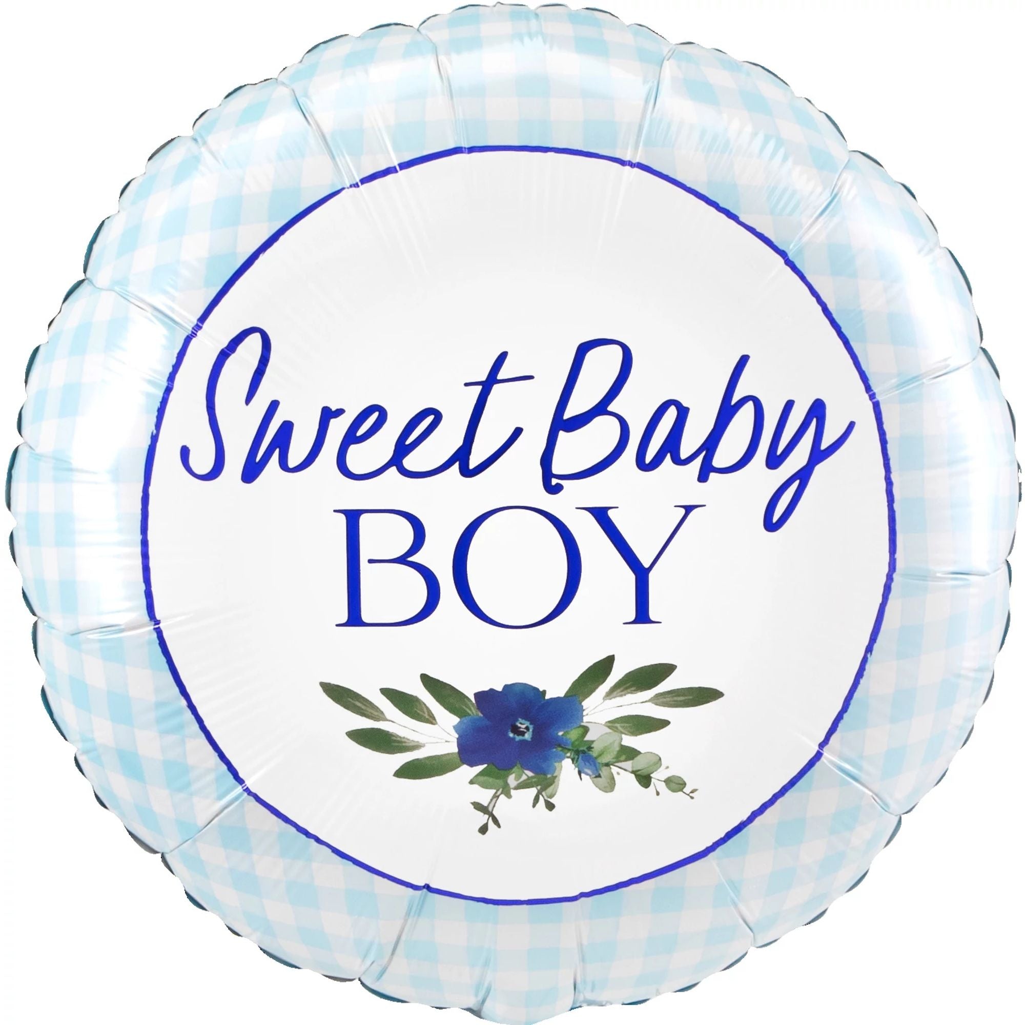 Celebrate the arrival of your little bundle of joy with this charming 18-inch foil balloon. Featuring a light blue gingham pattern and a simple floral accent, it perfectly complements any baby shower or welcome home party. Made from durable Mylar, this metallic balloon is designed to stay inflated longer, ensuring your celebration is as joyful as the new addition to your family. Ideal for everyday celebrations or special baby occasions.